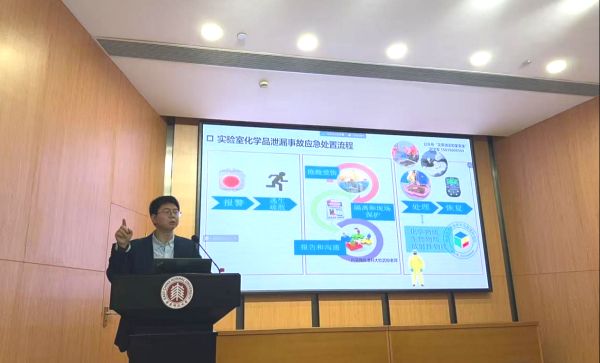 活动邀请上海纷研生化科技有限公司专职实验室安全培训专家屈文军担任主讲嘉宾。屈文军首先为师生们带来了深入的实验室危险化学品管理专题培训,内容涵盖了危险化学品的分类、储存、使用及废弃物处置等关键环节的安全要求。通过讲解,师生们对危化品管理的科学方法和有效手段有了更为全面的了解。