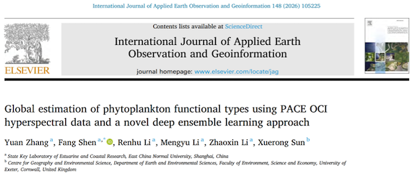 Zhang Y, Shen F, Li R, et al. Global estimation of phytoplankton functional types using PACE OCI hyperspectral data and a novel deep ensemble learning approach[J]. International Journal of Applied Earth Observation and Geoinformation, 2026, 148: 105225.