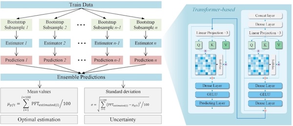 研究进一步提出了面向高光谱类群反演的HyperPFT模型。该模型在集成学习框架中嵌入轻量化Transformer架构,通过Bootstrap重采样训练构建深度集成模型,在提升预测精度与鲁棒性的同时,实现了像素级预测不确定性的量化评估。