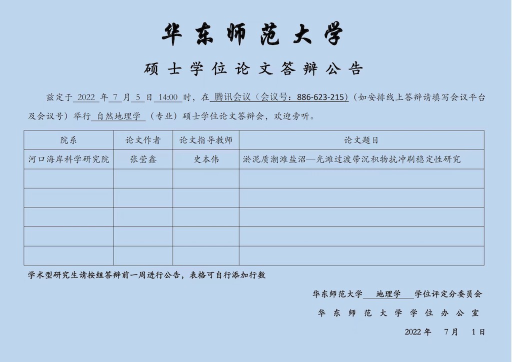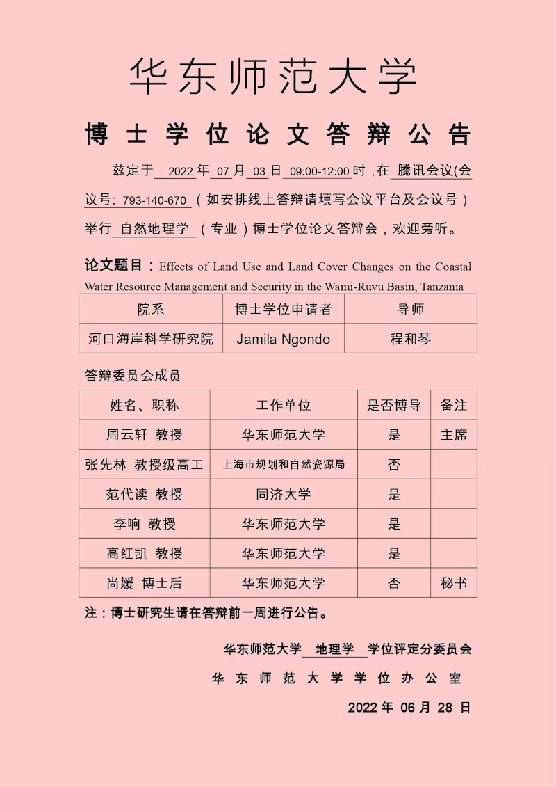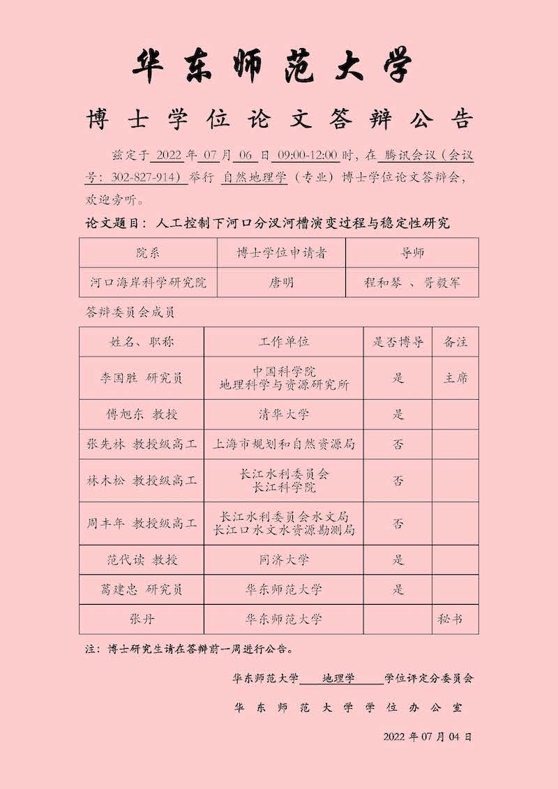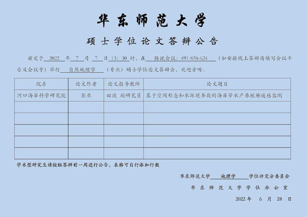 硕士学位论文答辩公告-李彤(自然地理学,导师张二凤)