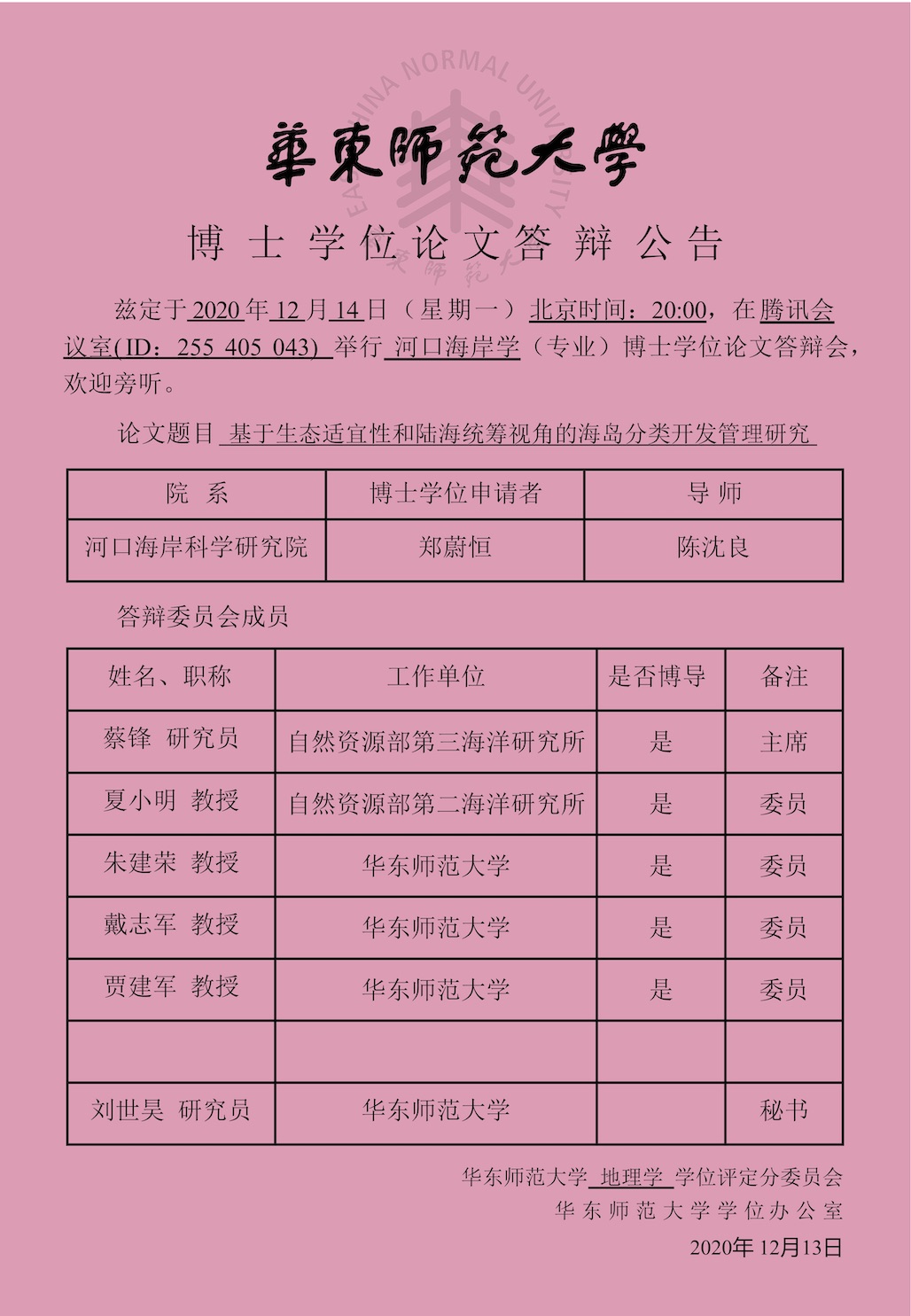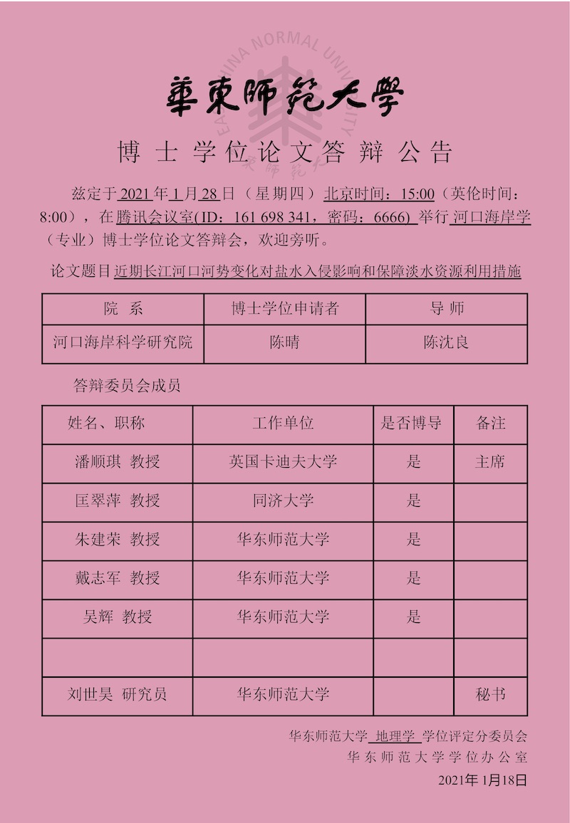 河口海岸学国家重点实验室(华东师范大学)第六届学术委员会
