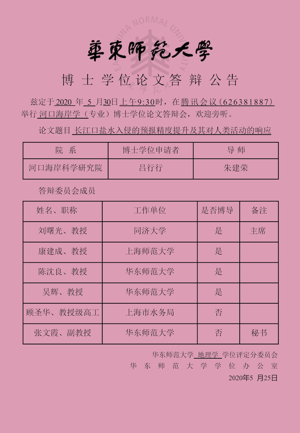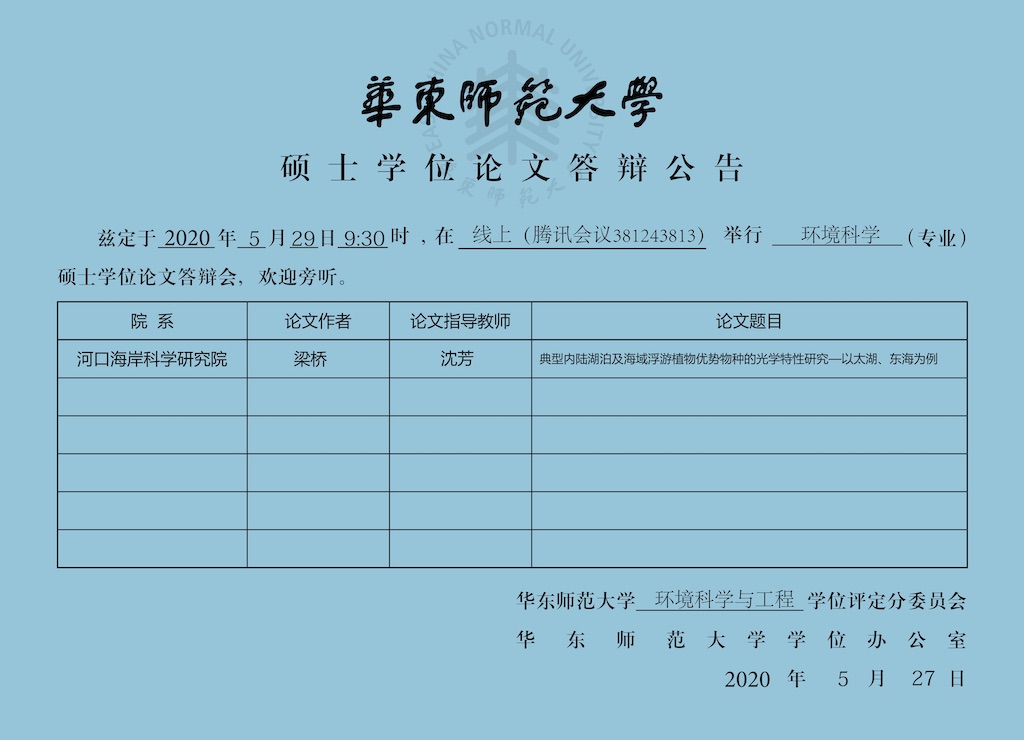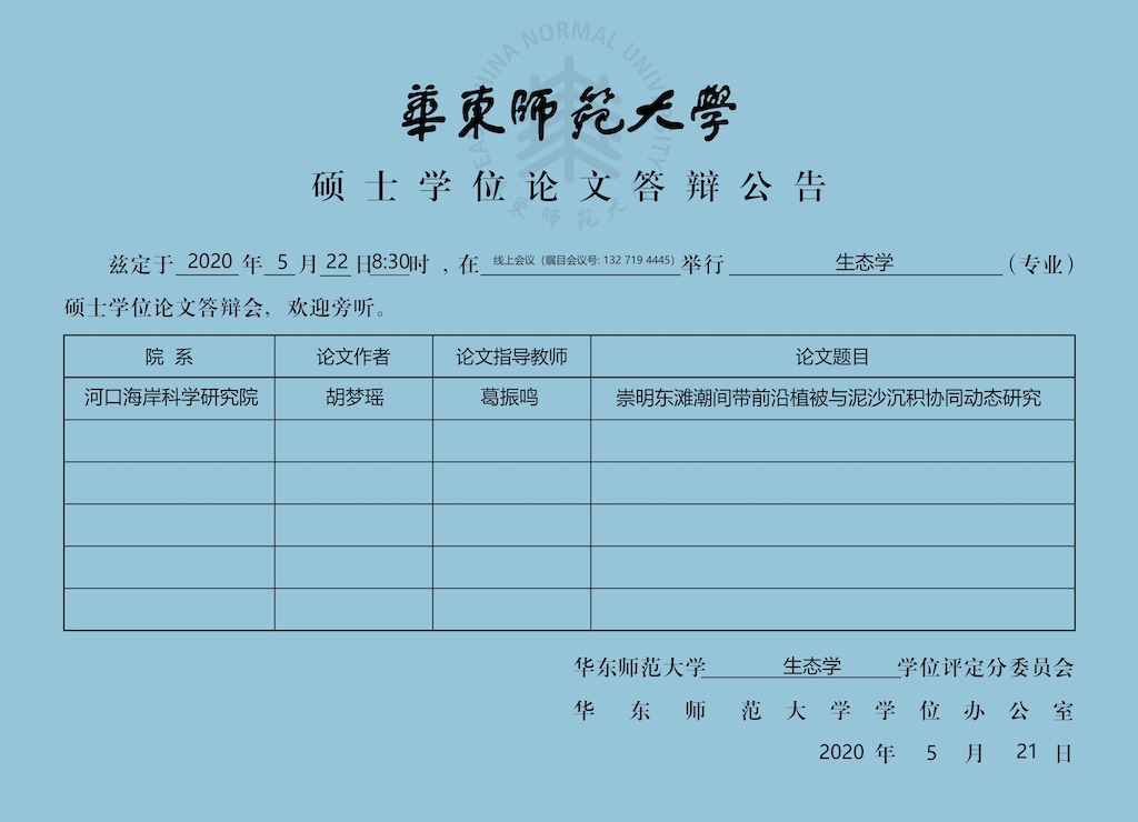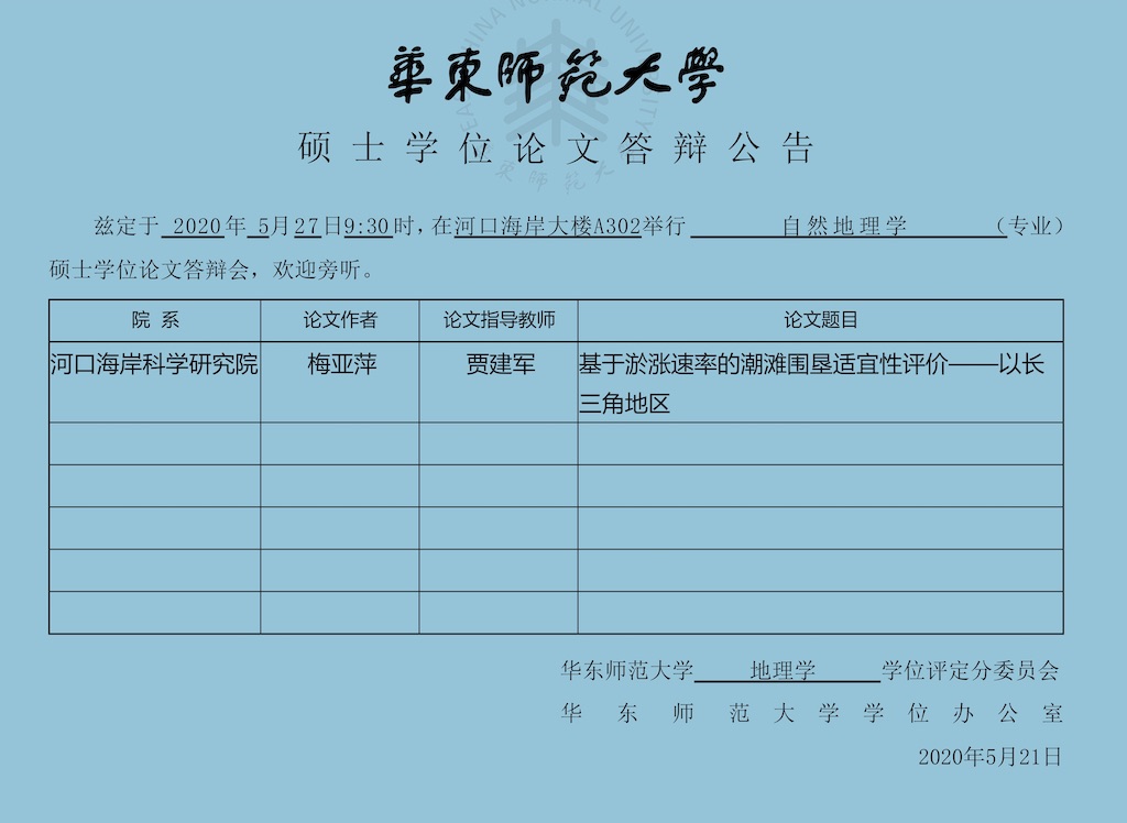 硕士学位论文答辩公告-张靖婷(港工专业,导师葛建忠副教授)